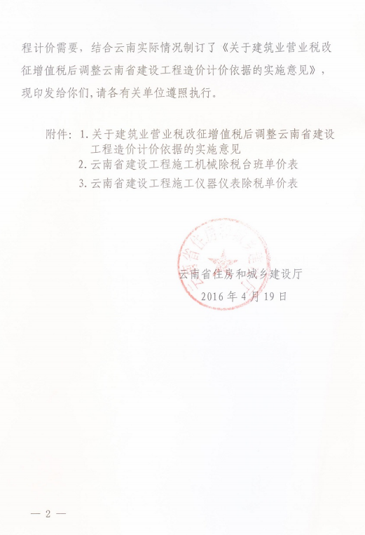 關(guān)于建筑業(yè)營業(yè)稅改征增值稅后調(diào)整云南省建設(shè)工程造價(jià)計(jì)價(jià)依據(jù)的實(shí)施意見的通知 云建標(biāo)[2016]207號(hào)