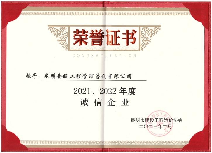我司優(yōu)秀員工湯瓊芳、馬紹方、張春利、張嘯、溥艷在2021~2022年造價(jià)咨詢業(yè)務(wù)工作中表現(xiàn)突出,榮獲“優(yōu)秀造價(jià)工作者”榮譽(yù)稱號(hào)。
