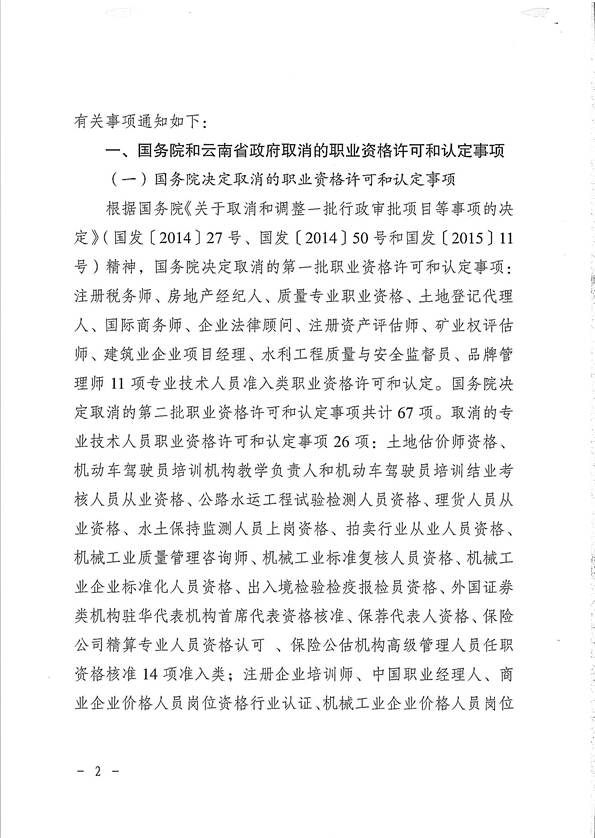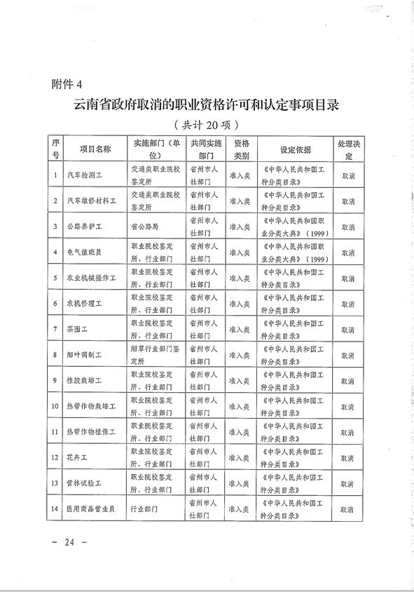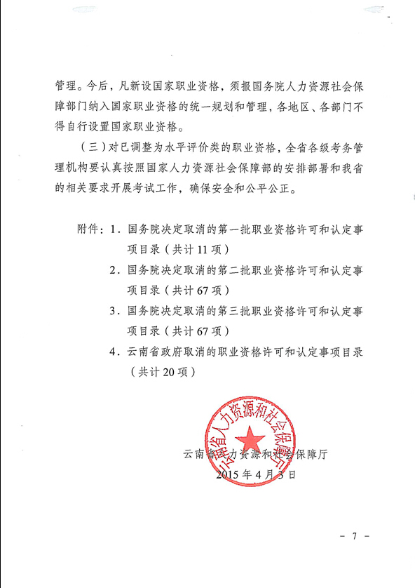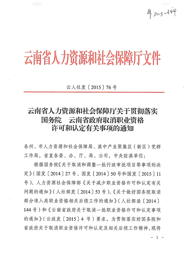 省人力資源和社會(huì)保障廳關(guān)于貫徹落實(shí)國(guó)務(wù)院云南省政府取消職業(yè)資格許可和認(rèn)定有關(guān)事項(xiàng)的通知